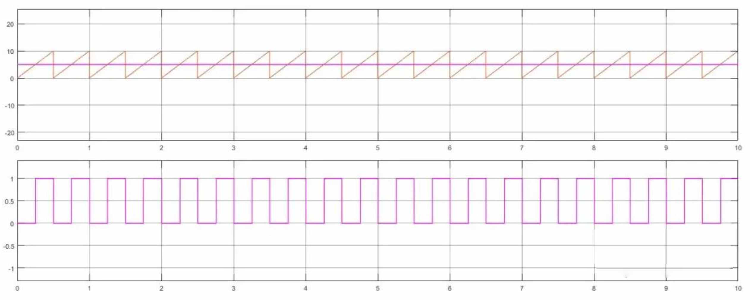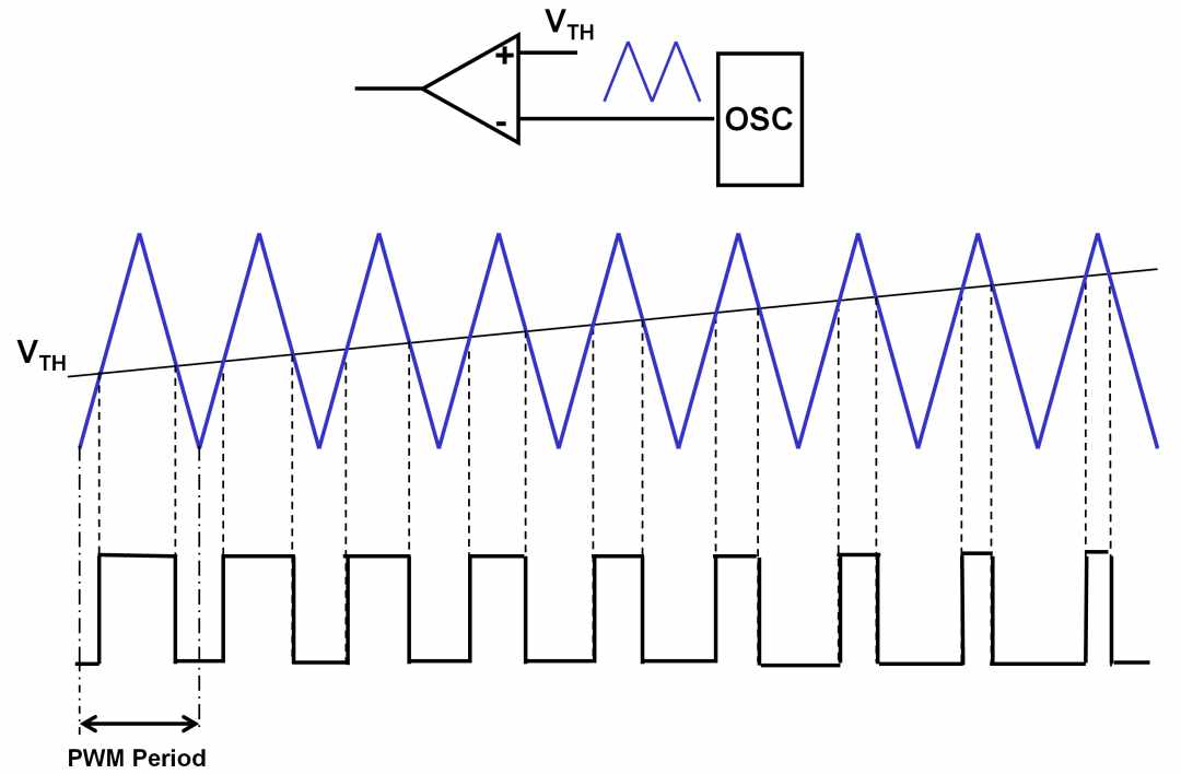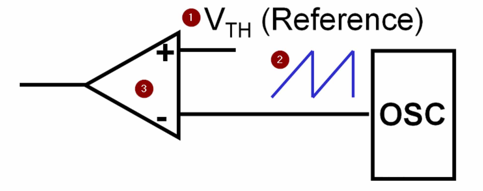 振荡器输出的锯齿波和参考值 进行比较,然后就可以输出PWM波形了;