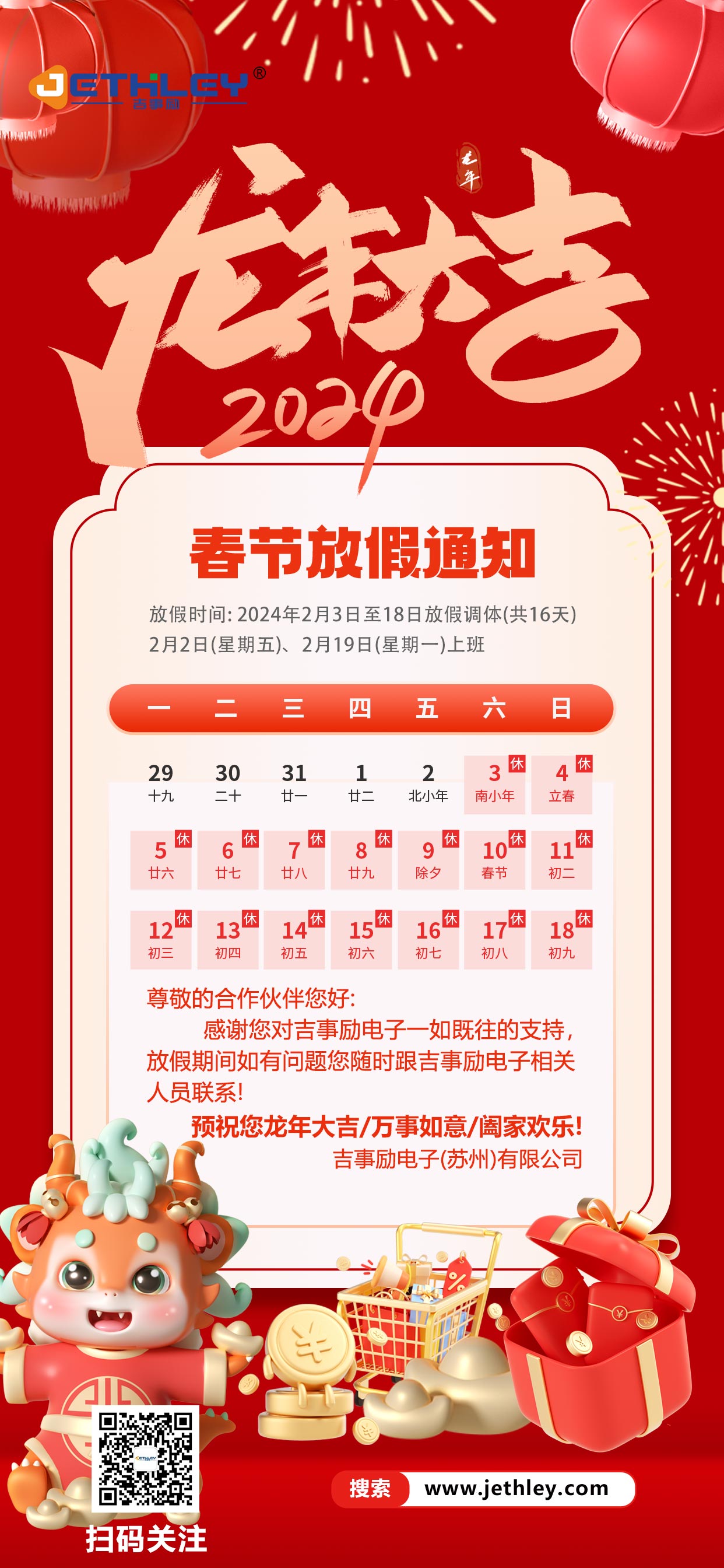 春节将至,根据国务院办公厅关于 2024 年春节放假通知并结合公司实际情况,现将春节放假时间具体安排如下:
