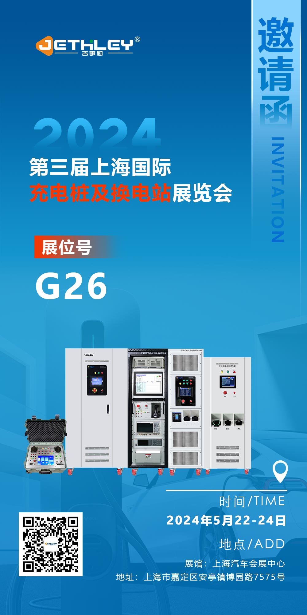 5月22-24日 上海汽车会展中心 吉事励电子(苏州)有限公司 与您相约 2024上海充换电展CPSE 展位号:G26 期待您的到来